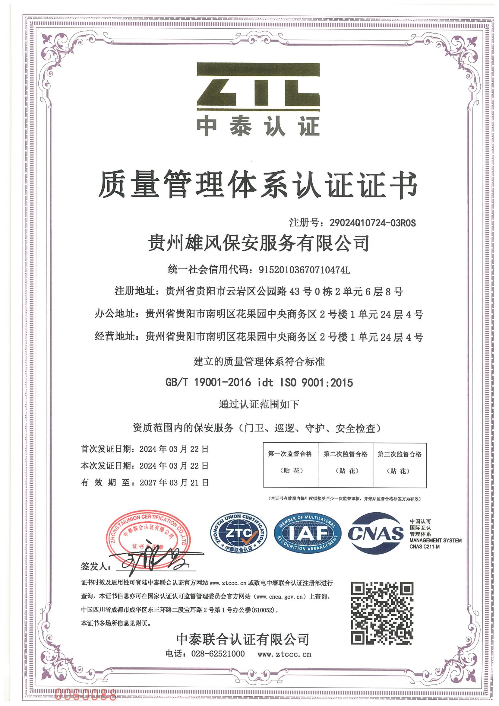 質(zhì)量管理體系認(rèn)證證書