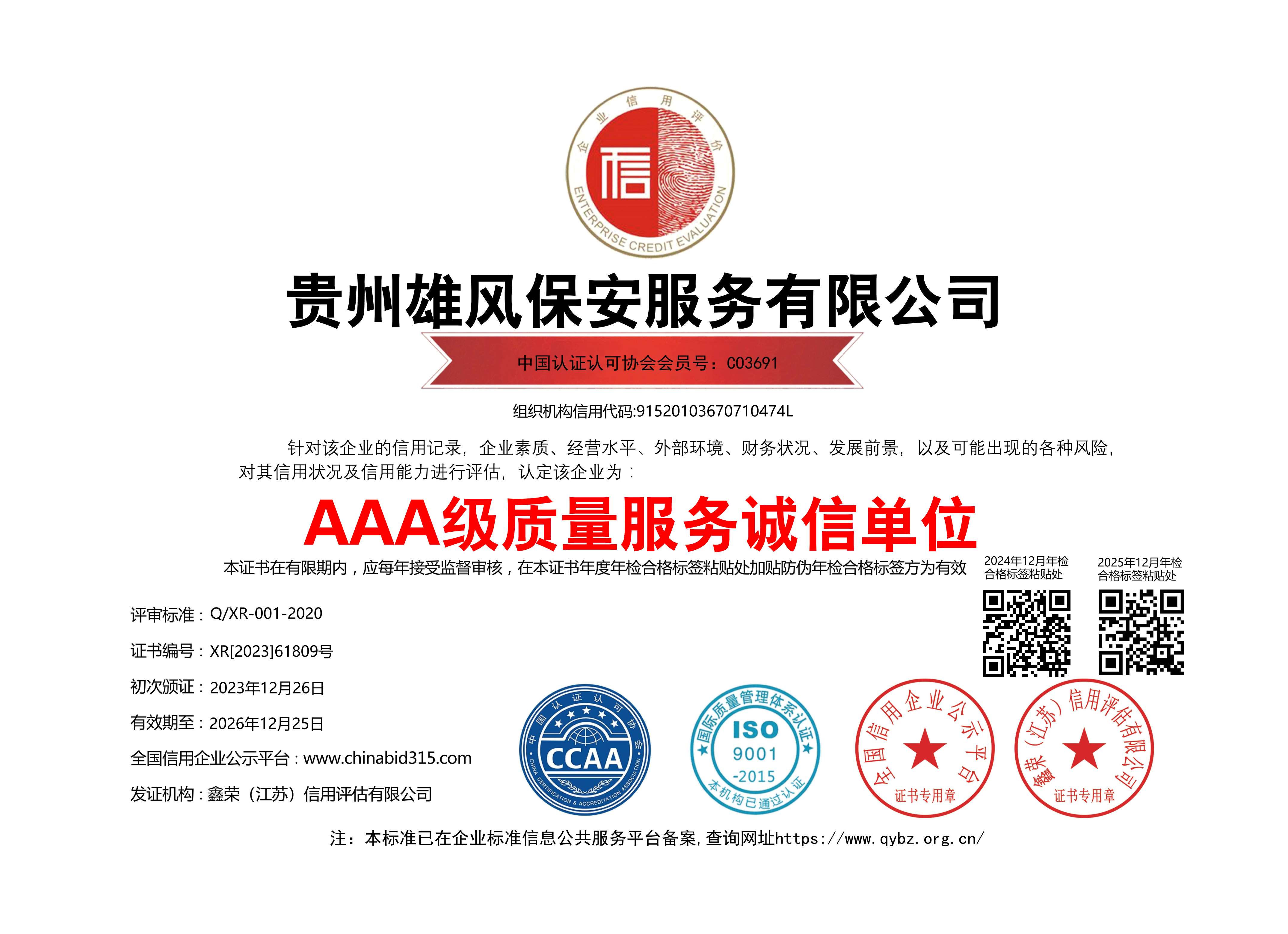 AAA級重質(zhì)量守信用企業(yè)銅牌